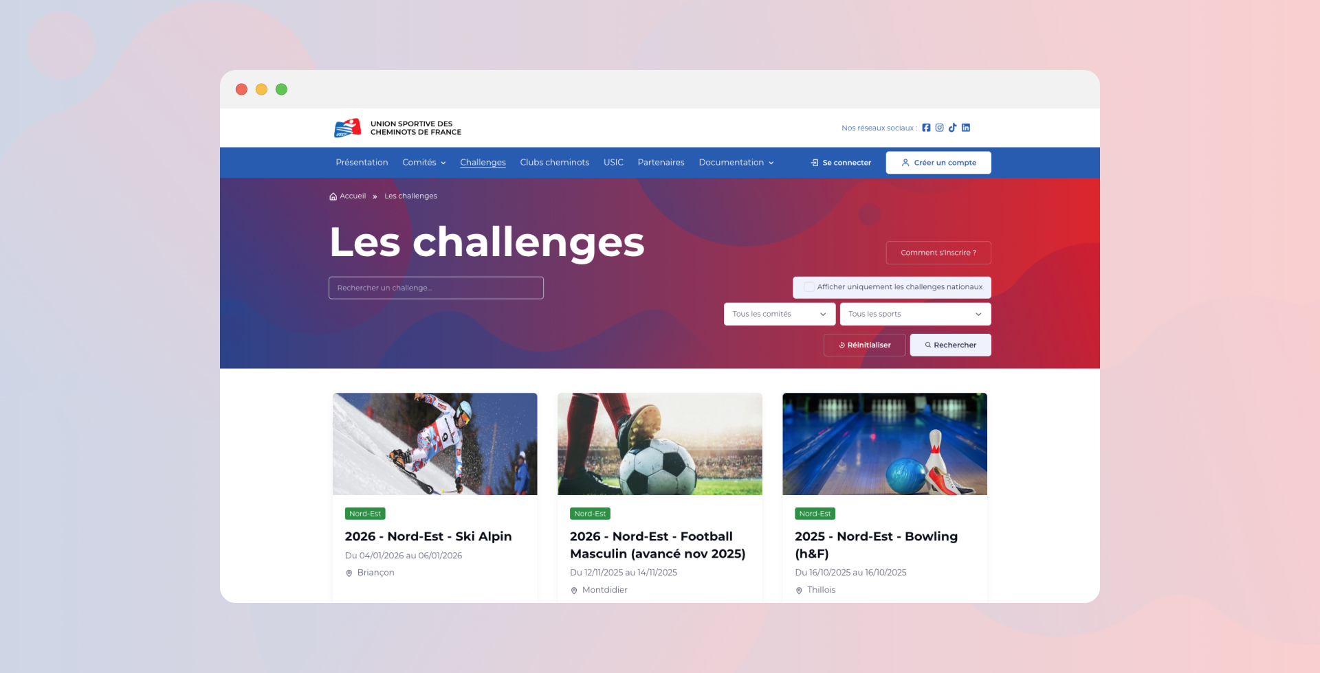 Les visiteurs trouvent plus facilement les informations sur les challenges, les comités et les actualités sportives. (uscf-sport-cheminot.fr)